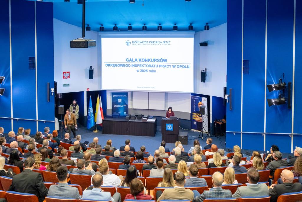 04 listopada 2025 roku w Auli Błękitnej Politechniki Opolskiej odbyła się uroczysta Gala podsumowująca konkursy i programy prewencyjne organizowane przez Okręgowy Inspektorat Pracy w Opolu w 2025 roku.