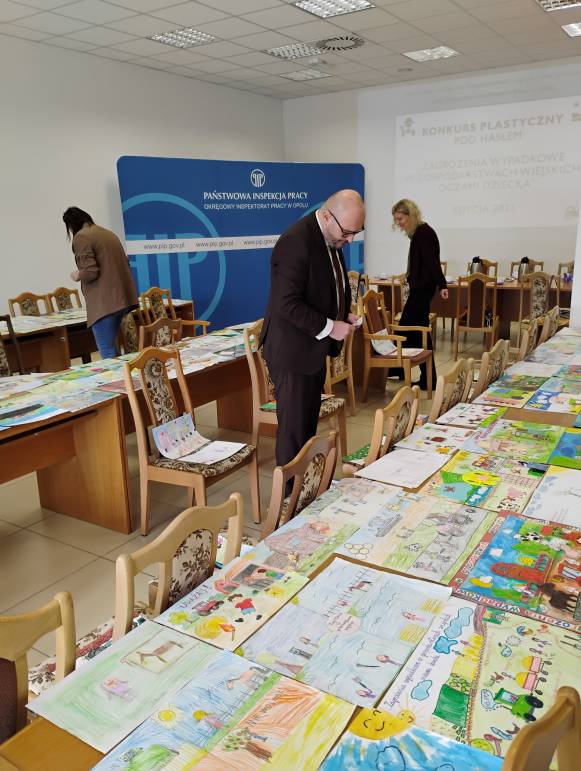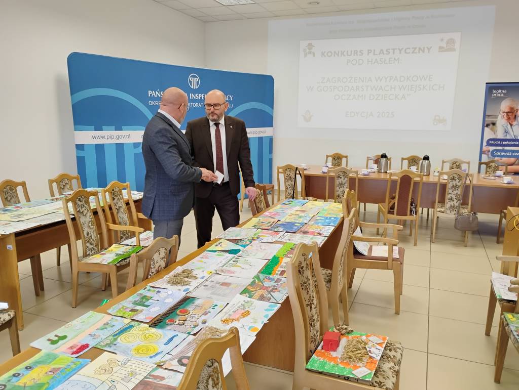 18 listopada 2025 r. w siedzibie Okręgowego Inspektoratu Pracy w Opolu członkowie Wojewódzkiej Komisji ds. Bezpieczeństwa i Higieny Pracy w Rolnictwie wyłonili laureatów konkursu plastycznego pod hasłem „Zagrożenia wypadkowe w gospodarstwach wiejskich oczami dziecka” EDYCJA 2025.
