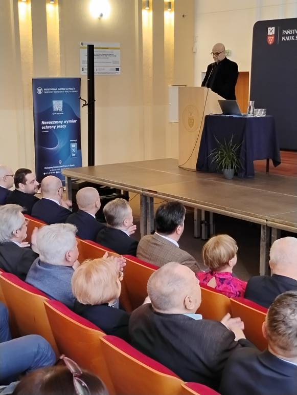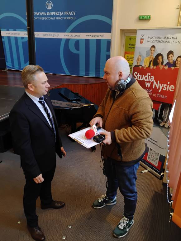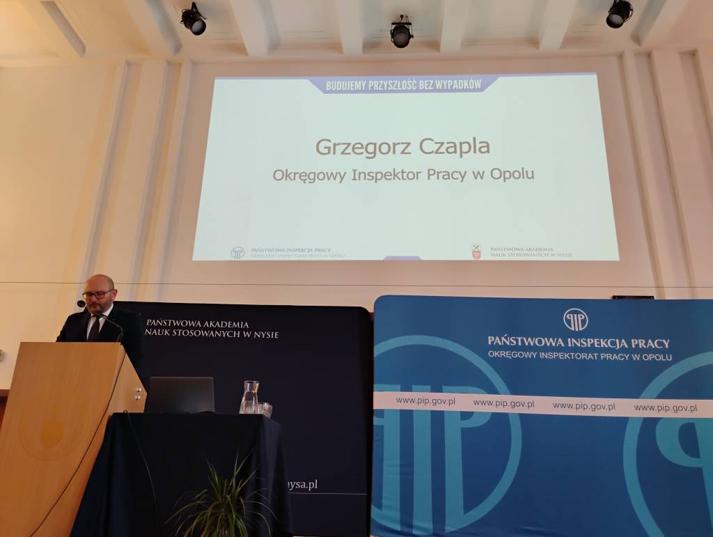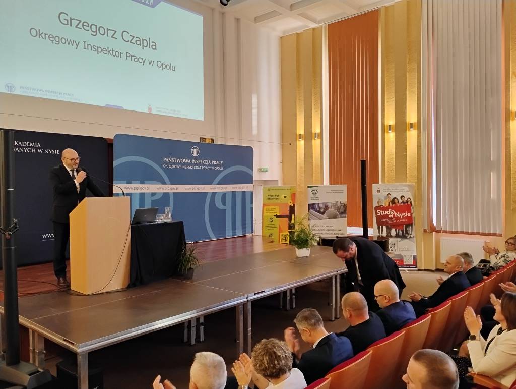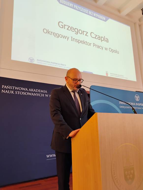 Zebranych przywitał Grzegorz Czapla - Okręgowy Inspektor Pracy w Opolu oraz Pan profesor Mariusz Kołosowski, Rektor Państwowej Akademii Nauk Stosowanych w Nysie.
