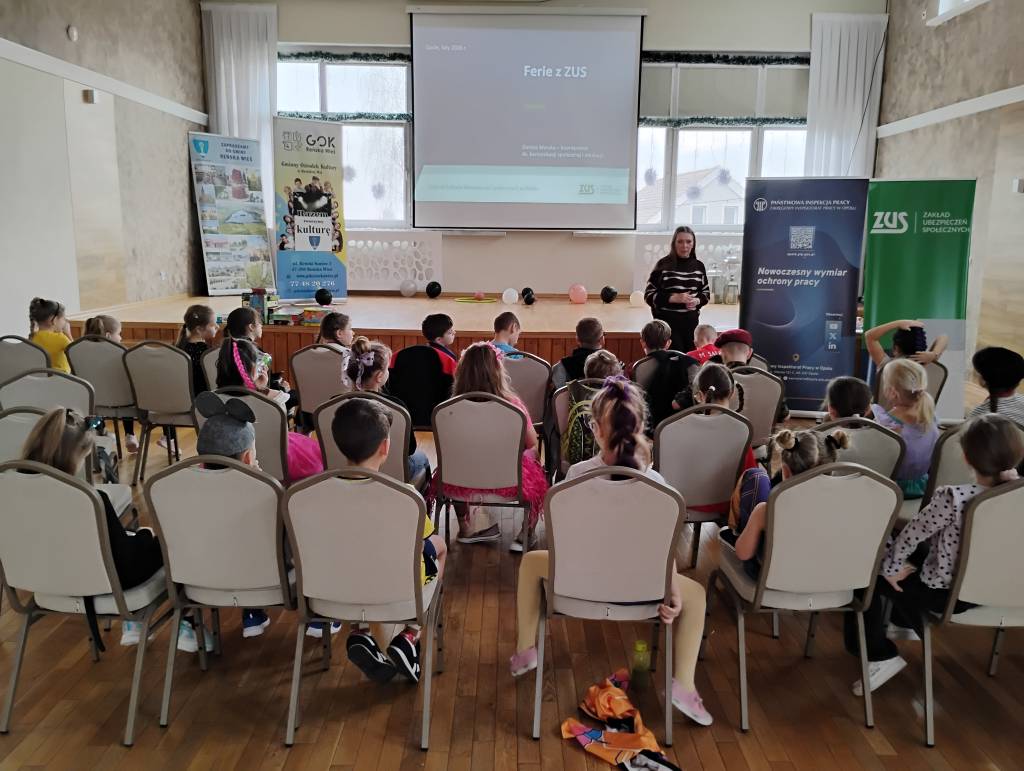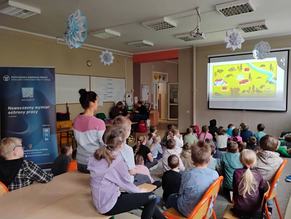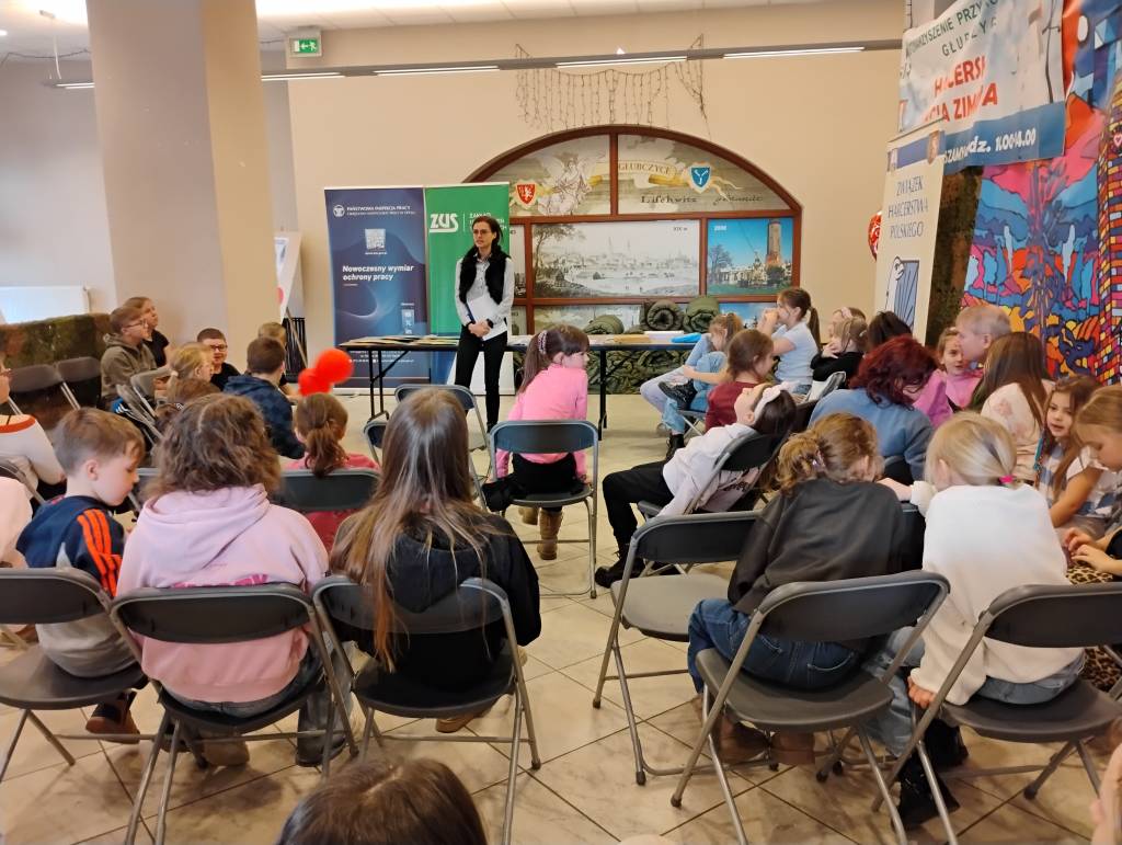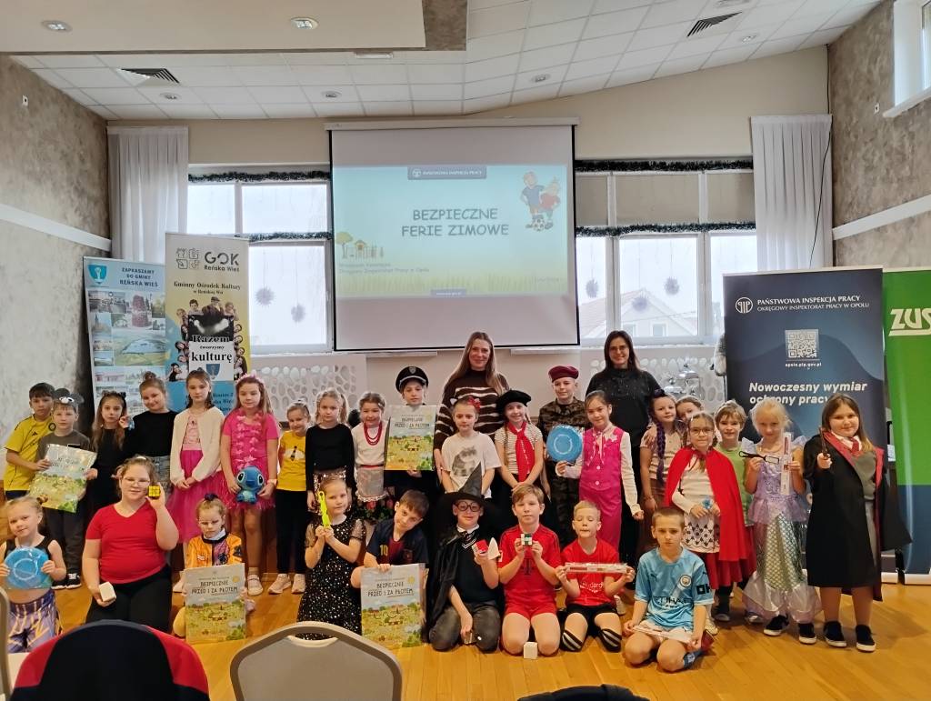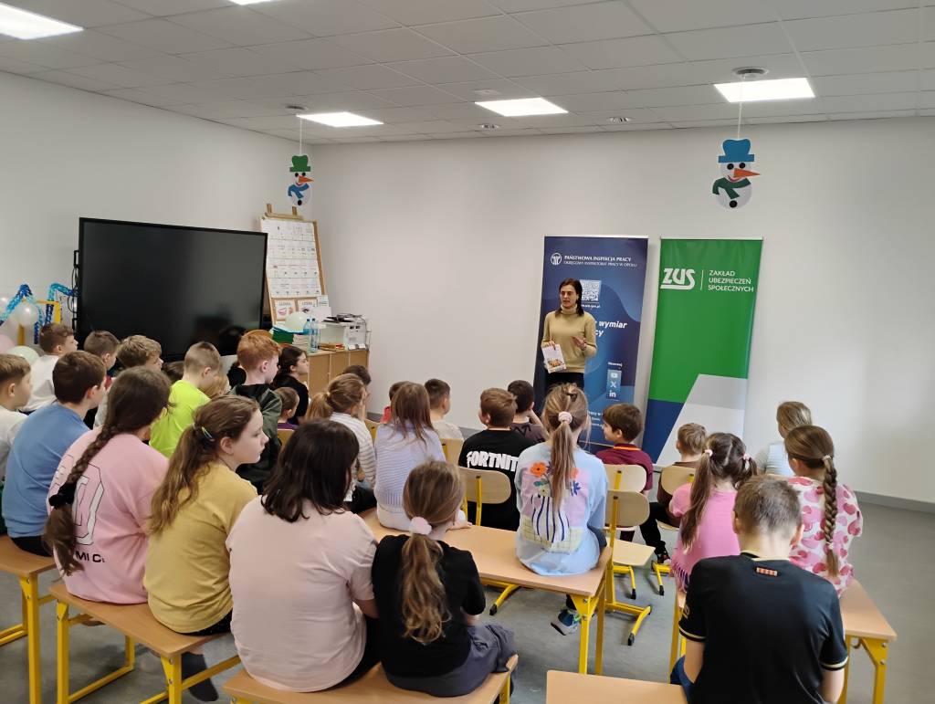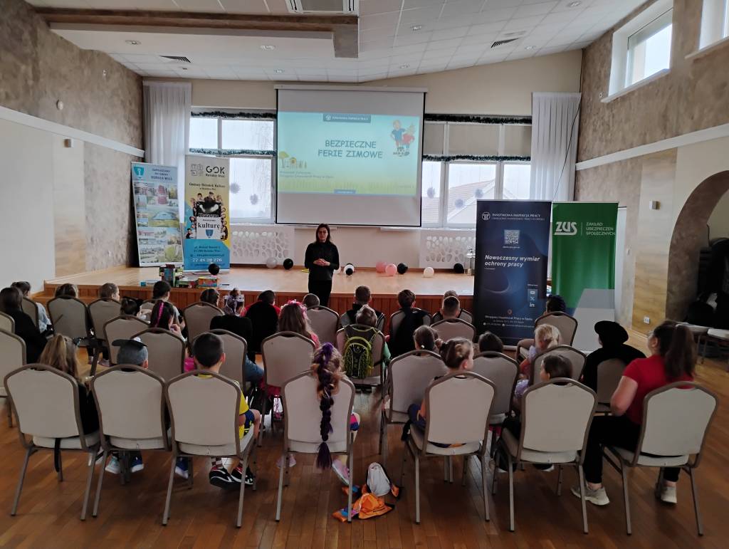Tegoroczne ferie zimowe na terenie województwa opolskiego odbyły się w dniach od 2 lutego do 15 lutego 2026 roku. Jak co roku przedstawicielki z Okręgowego Inspektoratu Pracy w Opolu oraz Zakładu Ubezpieczeń Społecznych Oddział w Opolu odwiedziły dzieci uczestniczące w półkoloniach zimowych. Program spotkań był bogaty i różnorodny, dostosowany do wieku, potrzeb oraz zainteresowań uczestników. Rozmawiałyśmy o zasadach bezpieczeństwa na wsi i w mieście, ze szczególnym uwzględnieniem wykazu czynności szczególnie niebezpiecznych, których nie wolno powierzać dzieciom poniżej 16 lat. Uczestnicy spotkań mogli nie tylko zdobyć wiedzę, ale także kształtować odpowiedzialne i bezpieczne postawy. Nie zabrakło również wielu atrakcji: konkursy, quizy, gry edukacyjne, rebusy, kolorowanki, filmy edukacyjne.