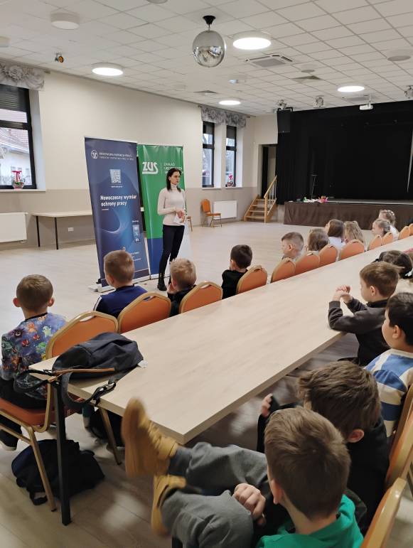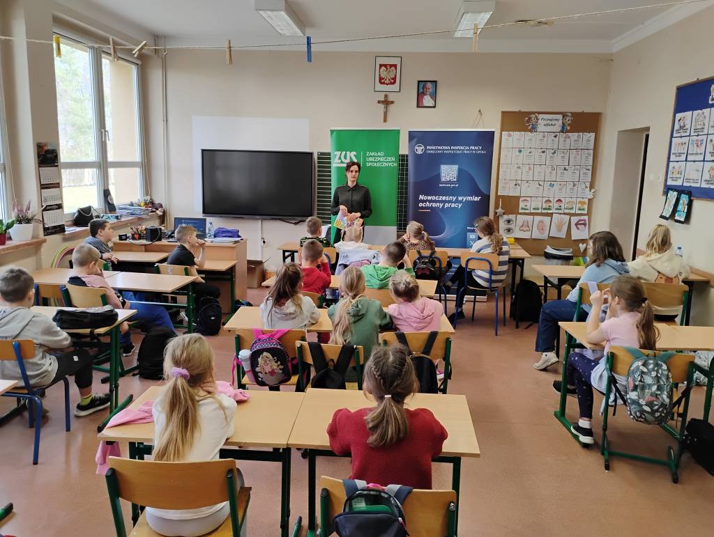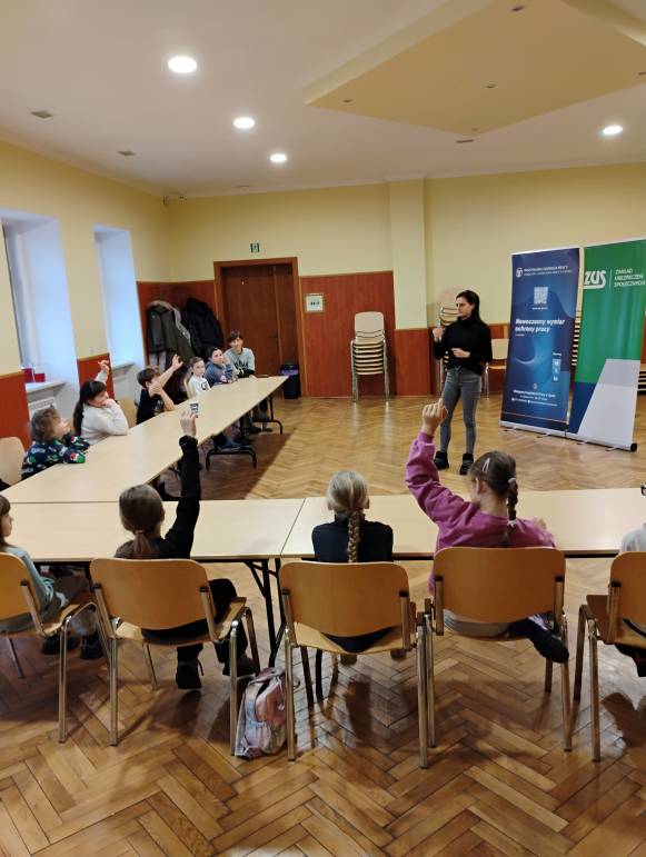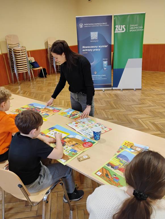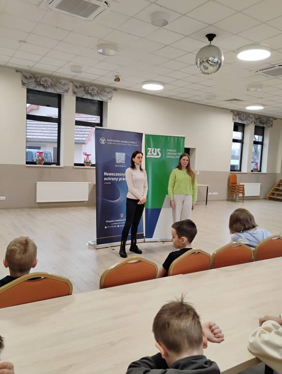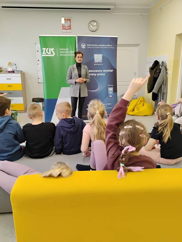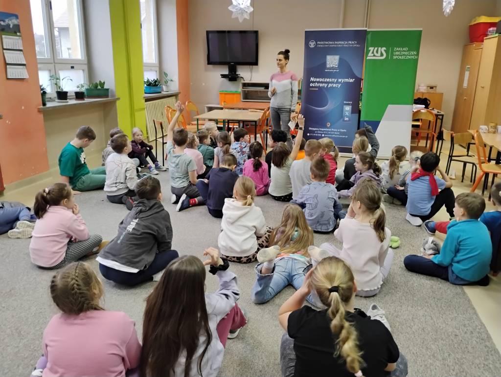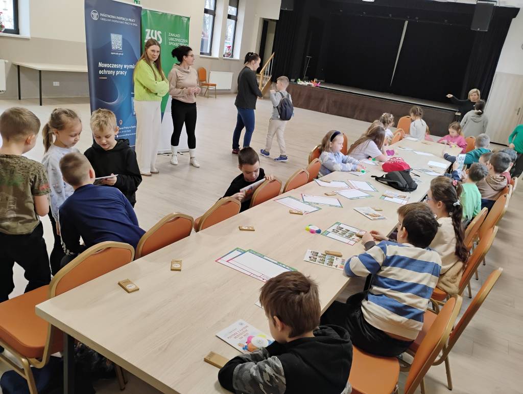 Tegoroczne ferie zimowe na terenie województwa opolskiego odbyły się w dniach od 2 lutego do 15 lutego 2026 roku. Jak co roku przedstawicielki z Okręgowego Inspektoratu Pracy w Opolu oraz Zakładu Ubezpieczeń Społecznych Oddział w Opolu odwiedziły dzieci uczestniczące w półkoloniach zimowych. Program spotkań był bogaty i różnorodny, dostosowany do wieku, potrzeb oraz zainteresowań uczestników. Rozmawiałyśmy o zasadach bezpieczeństwa na wsi i w mieście, ze szczególnym uwzględnieniem wykazu czynności szczególnie niebezpiecznych, których nie wolno powierzać dzieciom poniżej 16 lat. Uczestnicy spotkań mogli nie tylko zdobyć wiedzę, ale także kształtować odpowiedzialne i bezpieczne postawy. Nie zabrakło również wielu atrakcji: konkursy, quizy, gry edukacyjne, rebusy, kolorowanki, filmy edukacyjne.