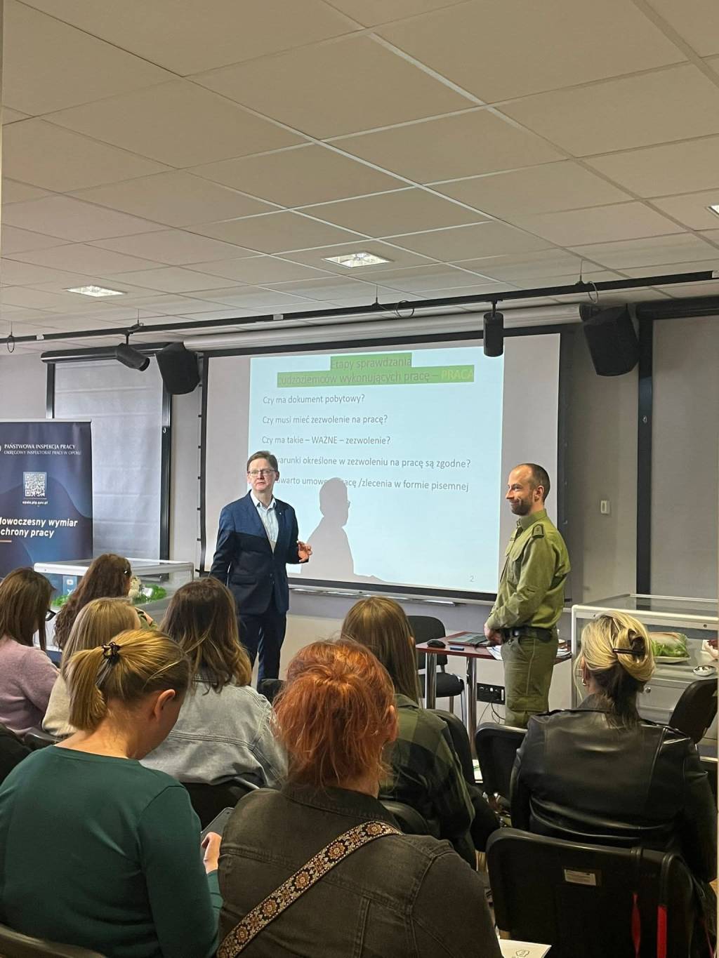 Prelegentami byli przedstawiciele Okręgowego Inspektoratu Pracy w Opolu oraz Straży Granicznej w Opolu, którzy omówili m.in.: