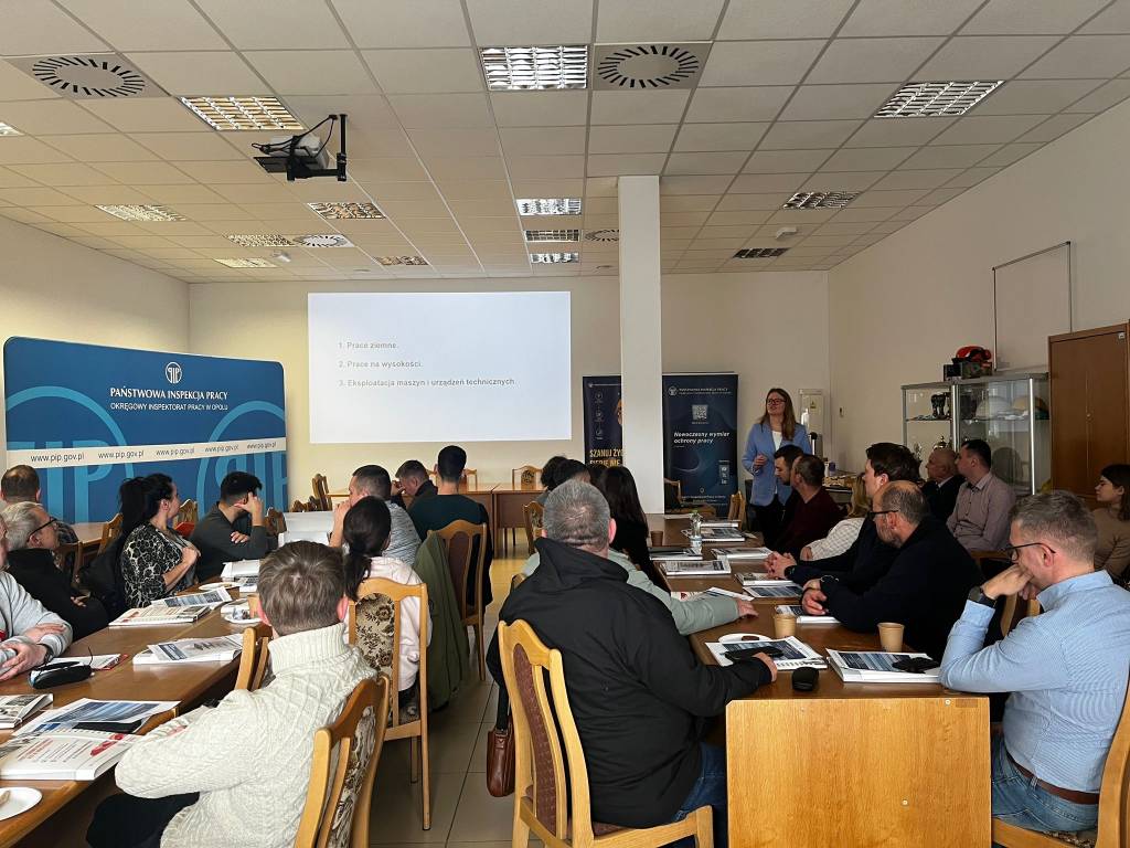 Podczas spotkania przekazano informacje o możliwości uczestnictwa w programach prewencyjnych realizowanych przez Okręgowy Inspektorat Pracy w Opolu: Zdobądź Dyplom PIP, Prewencja wypadkowa oraz konkurs Buduj bezpiecznie.