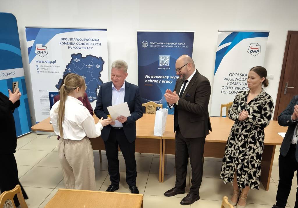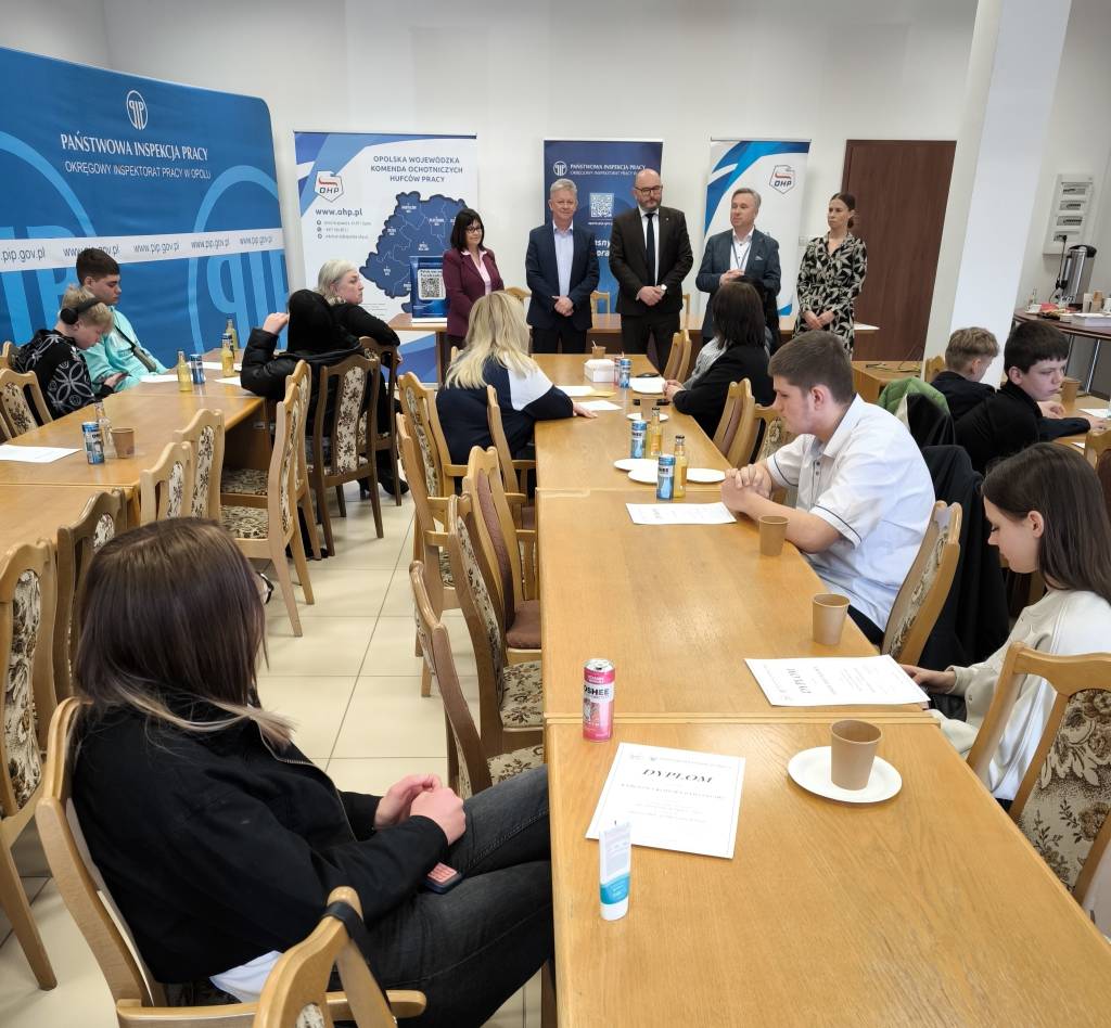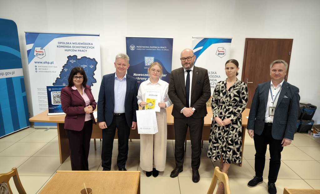 Wojewódzki Konkurs „Bezpieczny w pracy - 2026” został zorganizowany w dniu 23.04.2026 r. przez Opolską Wojewódzką Komendę Ochotniczych Hufców Pracy we współpracy z Okręgowym Inspektoratem Pracy w Opolu i był adresowany do młodzieży, która ma status pracownika młodocianego.