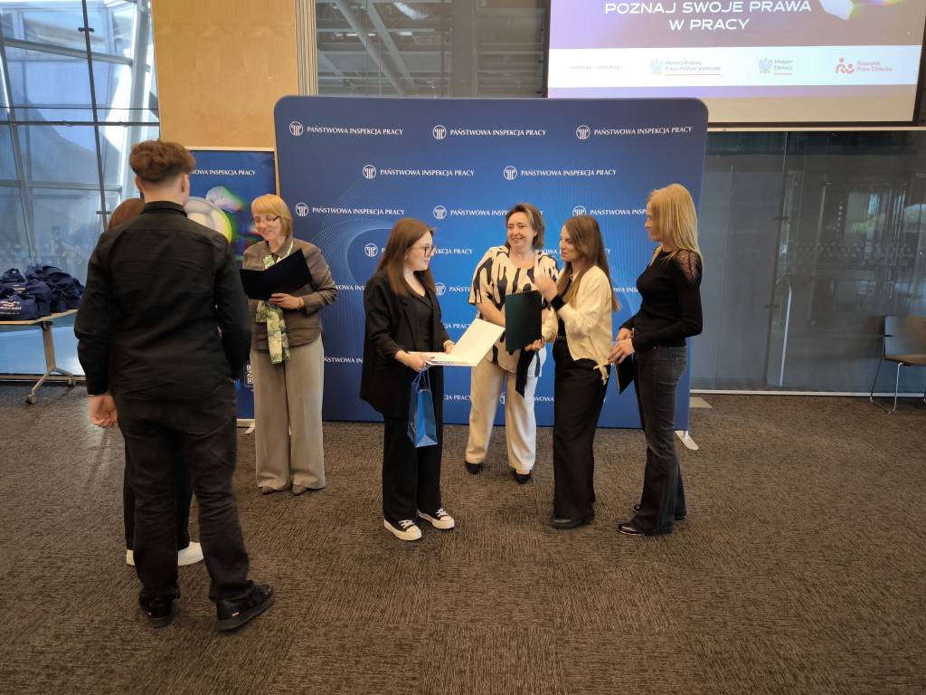Za nami finał XIII edycji konkursu pn. "Poznaj swoje prawa w pracy", którego celem jest popularyzowanie wśród uczniów szkół ponadpodstawowych wiedzy dotyczącej przepisów prawnej ochrony pracy, bezpieczeństwa i higieny pracy oraz legalności zatrudnienia i innej pracy zarobkowej.